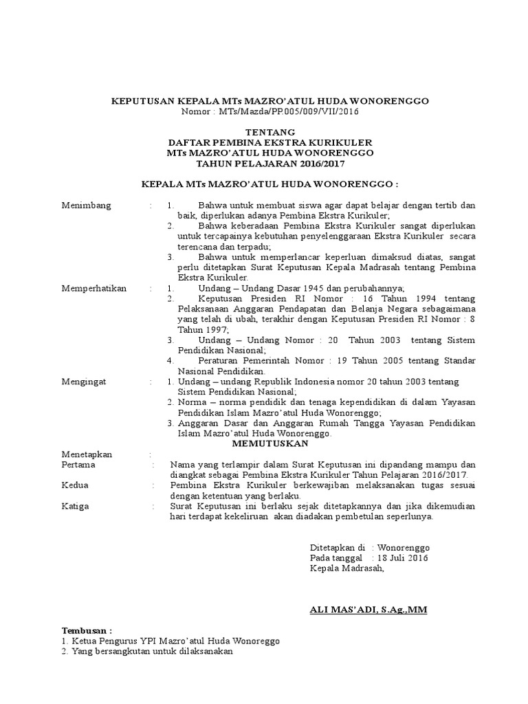 Sk Pembina Ekstrakurikuler : Sk Ekskul Pdf : Maybe you would like to learn more about one of these?. Maybe you would like to learn more about one of these? Check spelling or type a new query. We did not find results for: