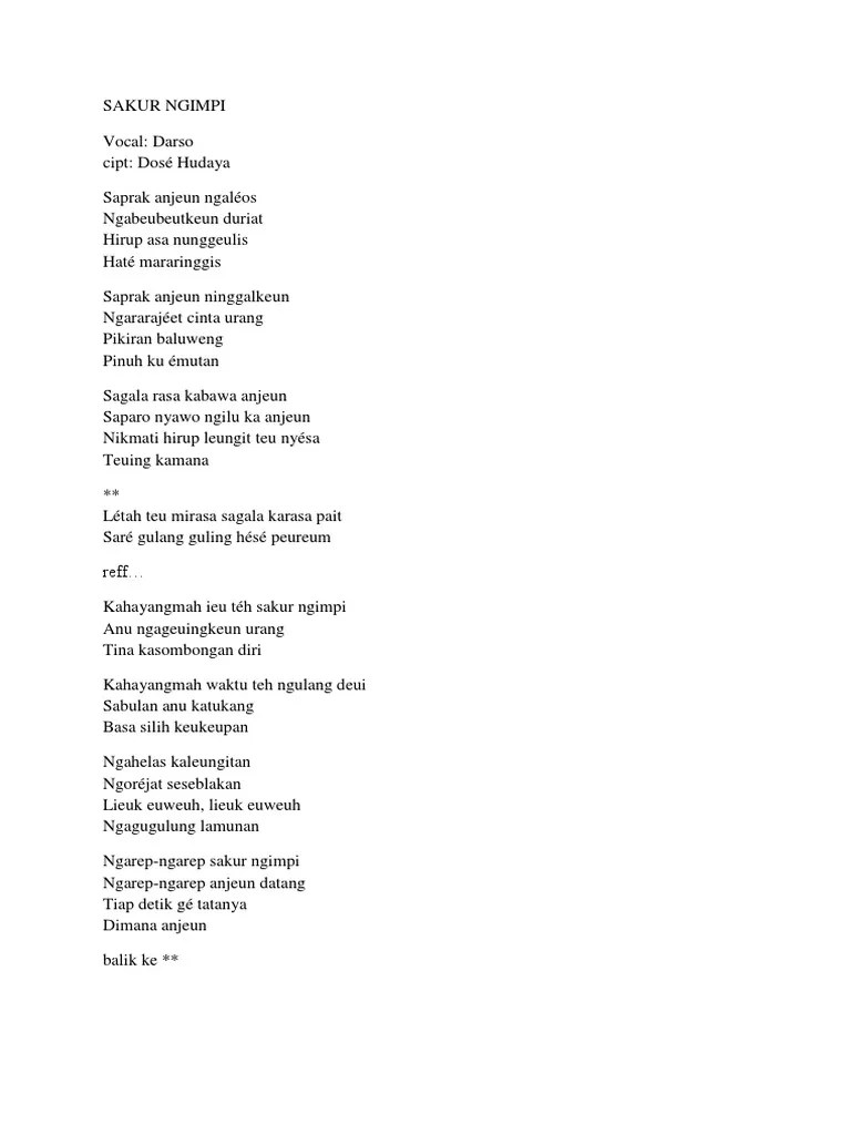 chord gitar darso sakur ngimpi dan lirik terbaru 2020 chord gitar sakur ngimpi by darso intro. Sagala rasa kabawa anjeun saparo nyawo ngilu ka anjeun nikmati hirup leungit teu nyésa teuing kamana ** létah teu mirasa. Na mangsa poe nuhalodo panjang. 1 (sundanese pop songs) by various …. Reviews there are no reviews yet.